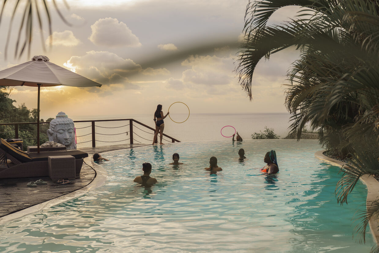 Tucked away in a quiet corner of Arugam Bay, far from the crowds, this edition is rooted in nature and adventure. Picture yourself hooping, surfing, and heading out on wildlife safaris. Just a two-minute walk from the beach, this cosy property will be our home for the week. The resort is known for its sustainable lifestyle and locally grown vegetables, so expect a nourishing and soulful stay. And of course, we are in Sri Lanka, so you’ll explore this beautiful island in the company of fellow hoopers, who are known to be the sweetest lot 💛